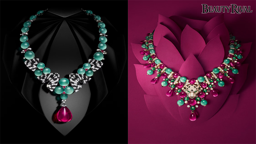 - Chryseis Necklace: Inspired by butterfly wings, featuring a dramatic 63.76-carat rubellite framed by black-and-white chalcedony.