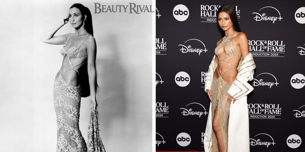 Beauty Rival – Zendaya and Cher, two iconic names in the world of entertainment and fashion, shared a remarkable moment at the 2024 Rock & Roll Hall of Fame induction ceremony. Zendaya, known for her roles in “Euphoria” and “Dune,” paid homage to Cher’s legacy not only with her words but also with her striking choice of attire. The event underscored the intergenerational influence of Cher’s timeless style.